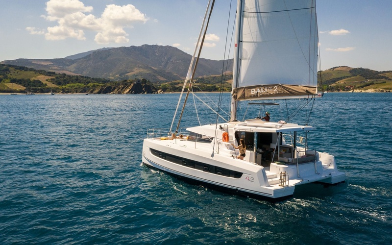 A modern 42’ sailing catamaran with spacious cabins, panoramic lounge, and water toys for every guest.